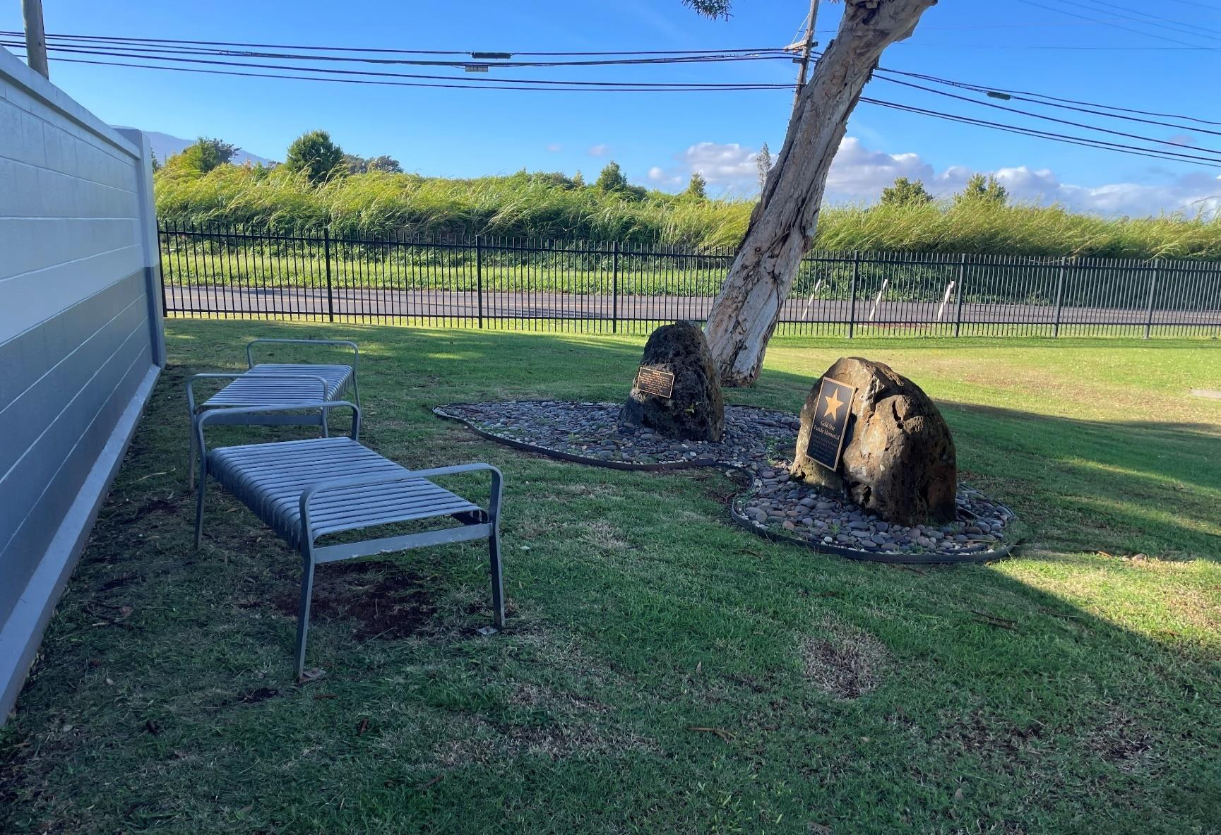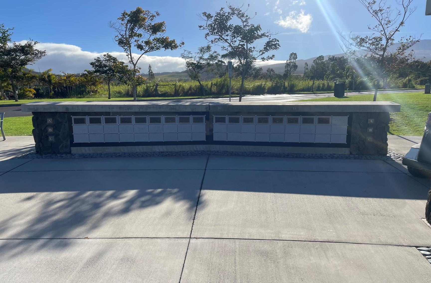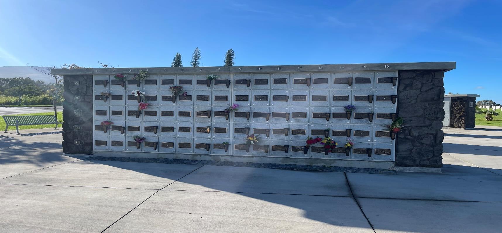 The AJA Veterans Club, Maui Chapter, dedicated an 18 inches by 24 inches bronze plaque mounted on moss rock veneer located adjacent to the committal shelter and a 5 feet by 4 feet granite headstone mounted in concrete to honor the MIA from WWII and the Korean War Veterans.